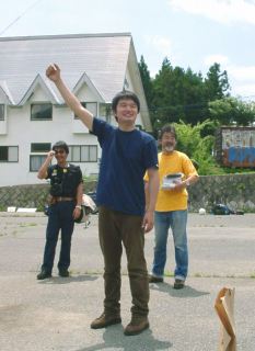 参加者が帰ってひっそりした駐車場で、雑誌掲載用の写真を撮影されるキムカメさんとテムジンさん。