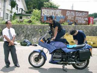 おなじみK75Sの黒いシートが太陽熱を吸収してフライパン状態になってしまい、急遽タオルを用意しての撮影と相成りました。
