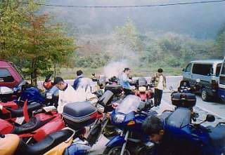 (ちなみに私は6時に目が醒めました)、外気温5度の駐車場でバイク談義をはじめたのでした。う〜ん、何ともすごい集団です。