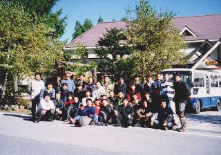 二日目の集合写真。ペンションひまわりの前で。