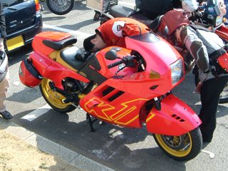 それでも10台弱が集まりました。エアロフローのスクリーンを装着のK75S、高速は相当に楽そうです(推測)(^o^)