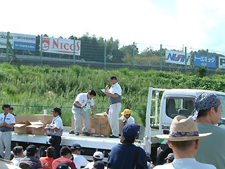 表彰式とタイヤを渡している様子。よく見ると有名な方が大勢いらっしゃってます。