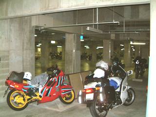 その地下駐車場。スペースには異常に余裕がありましたが、そのため他の参加者のバイクを見て回る楽しみはちょっと薄かったかも。