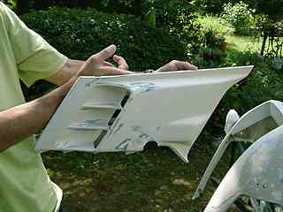 で、それが終ってからようやく真打ち・・・ということで、カウルの塗装の剥離を開始。しかし私はここで青くなった。