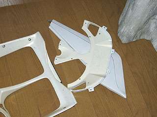 帰宅してサイドカウルの水研ぎをしていたところ、カウルの寸法が左右で違うのに気がついた。何やってたんだろうねえ16年前のドイツ。