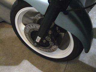 その後バイク屋に持ち込んでブレーキディスクを装着するという