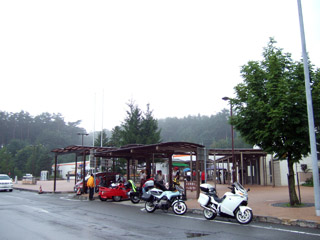 途中の道の駅で。ホイールの色が合ってねえ・・・。