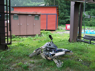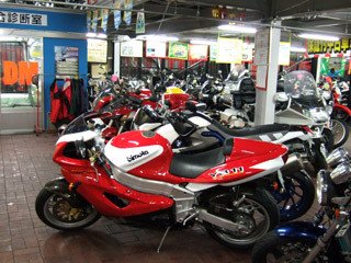 使い物にならないのだが、いつものバイク屋の設備ではスクーターが取り扱いのメインだから、