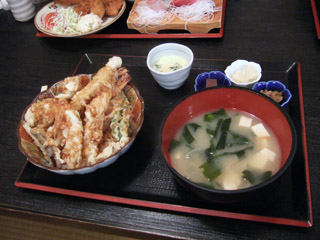 カキフライ定食と、天丼定食。味噌汁のお椀が異様に大きいわけで・・・。