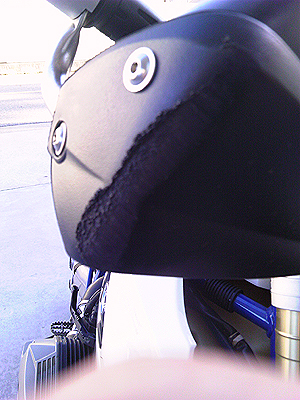 おまけにサイド部分には真っ赤な文字でapriliaと堂々と書いてある(単にメーカーロゴが印刷されているだけとも言うが)。
