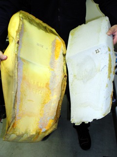 左はもちろんシートベース。右はウレタンと、その下のフォームラバー。
