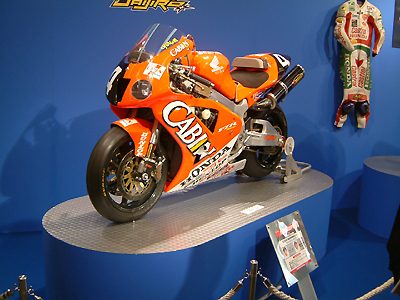 2003年MotoGP参戦モデルのRC211Vとウェア一式。