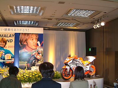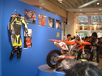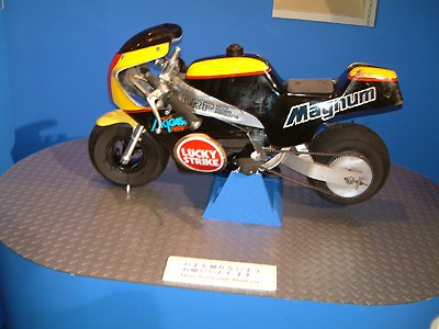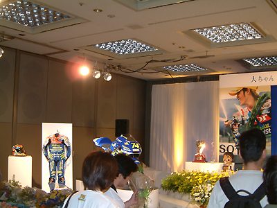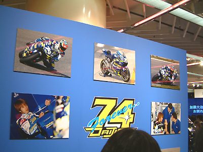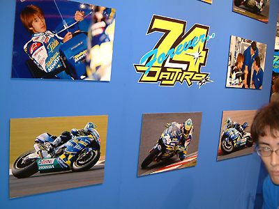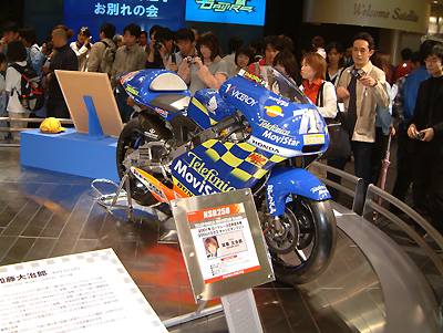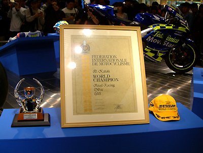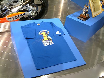 2001年のWGP250チャンピオンマシンのNSR250とチャンピオンを記念したTシャツ。