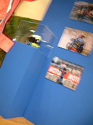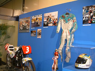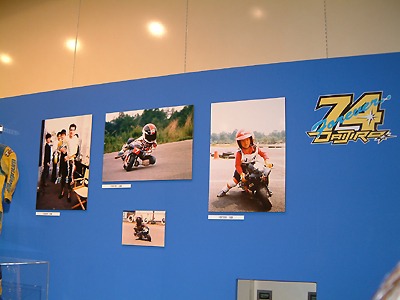 同じくミニバイクレース時代の写真やウェア、トロフィーなど。バイクはNS50Fでした。
