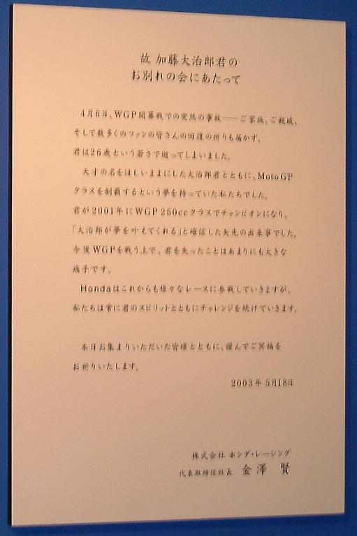 去る5月18日に青山にあるホンダ本社でお別れ会が開かれたため、東京まで行ってきました。