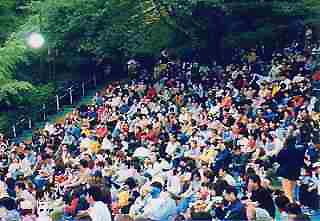 雨をものともせず集まる老若男女さまざまな観客たち。中にはビデオカメラを三脚で構えられた方も・・・