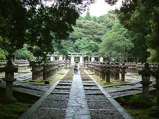 最大の特徴は墓所に並ぶ五百基もの石灯篭だ